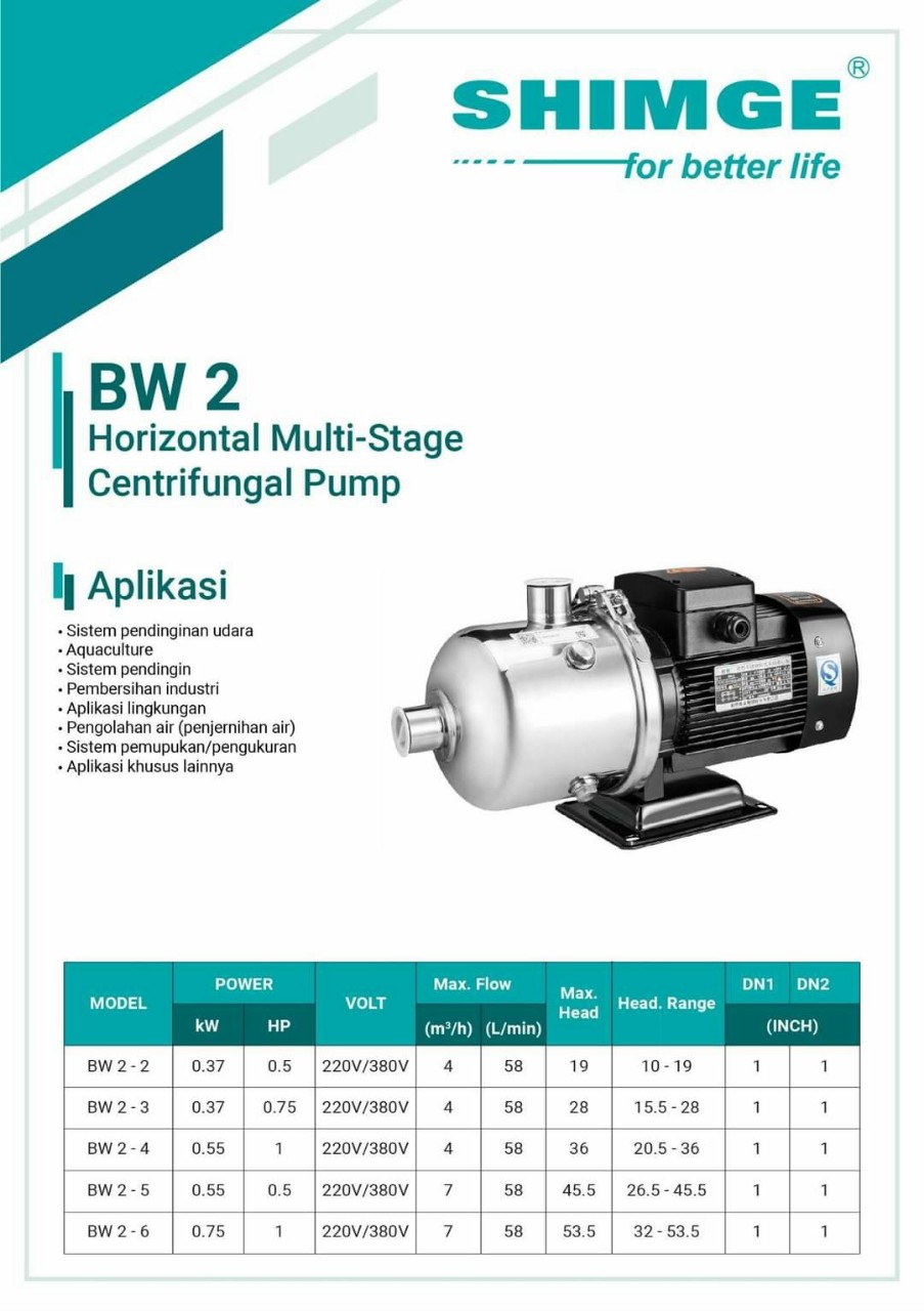 Thông tin chi tiết máy bơm trục ngang đa tầng cánh inox shimge bw2-6