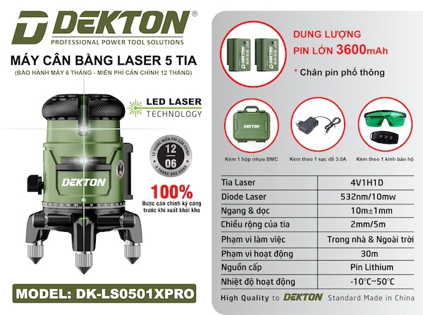 Máy Cân Bằng Laser 5 tia Dekton DK-LS0501XPRO