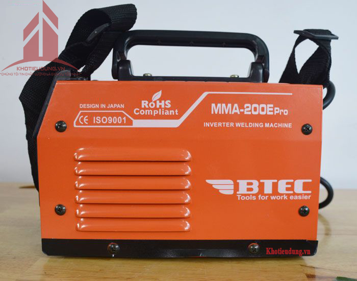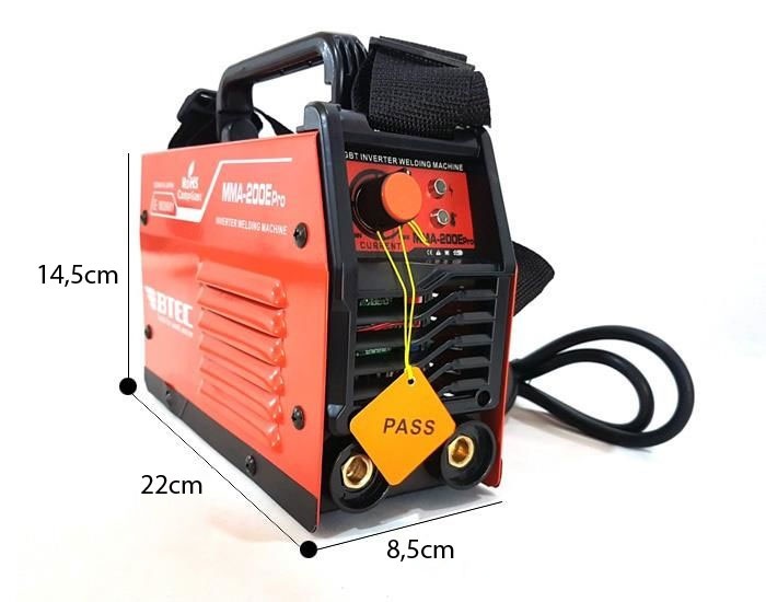 Máy hàn điện tử Btec MMA 200E Pro có kích thước nhỏ gọn phù hợp các công việc leo trèo trên cao. Máy có dây đeo thuận tiện di chuyển.
