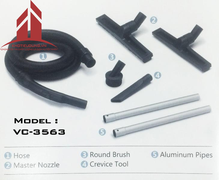 - Ống nhún, ống nối Schrome, bàn hút bụi, bàn hút nước, đầu hút dẹt, đầu chổi tròn.