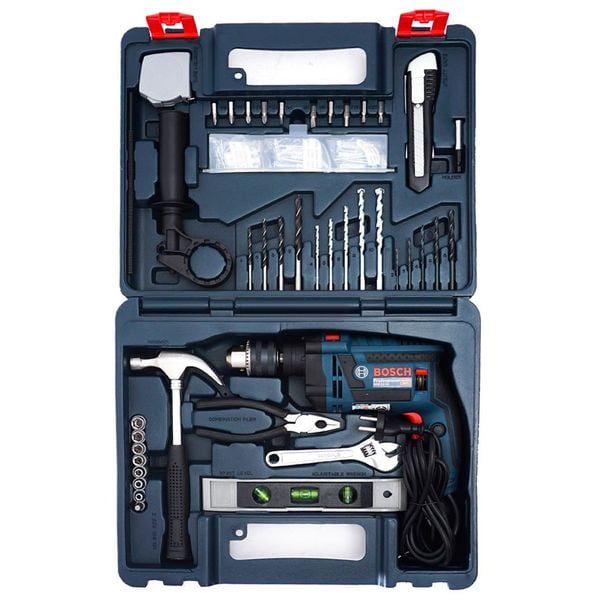 Máy khoan động lực Bosch GSB 16 RE SET 100 được sử dụng để khoan các bề mặt như tường, bê tông, sắt, gỗ, các bề mặt cứng khác. Máy có đầu cặp kèm theo để chuyển đổi từ khoan bê tông sang khoan sắt và khoan gỗ. Sản phẩm có ứng dụng cao trong các ngành cơ khí, xây dựng sữa chữa