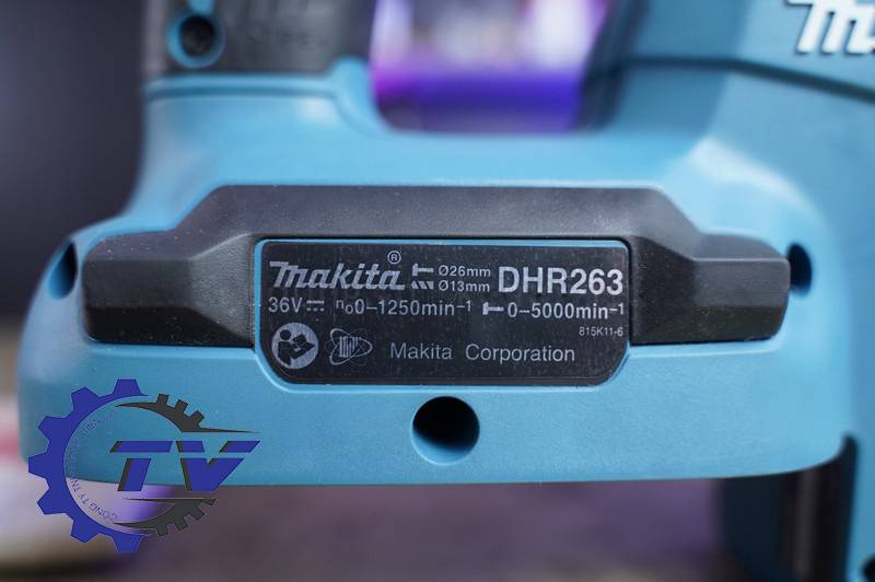 - Makita DHR263Z có đầu khoan được làm từ thép không gỉ siêu cứng, mài cạnh sắc bén, cứng cáp và có độ bền cao, luôn sáng bóng, không bị trầy xước trong suốt quá trình sử dụng.