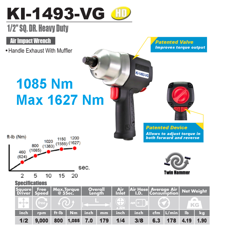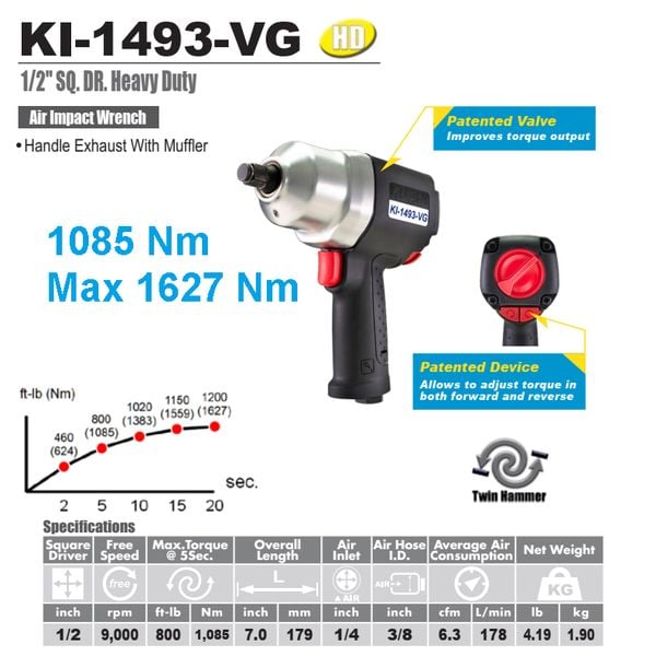 Bạn đang tìm kiếm 1 công cụ súng bắn ốc bằng hơi khỏe, lực lớn, độ bền cao nhưng lại nhỏ gọn, tốc độ nhanh và chuyên nghiệp thì KI-1493-VG là sự lựa chọn phù hợp nhất.