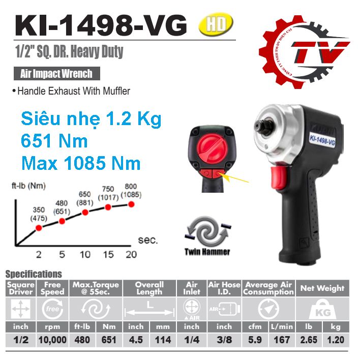 -Lực vặn 5 giây: 651 Nm.