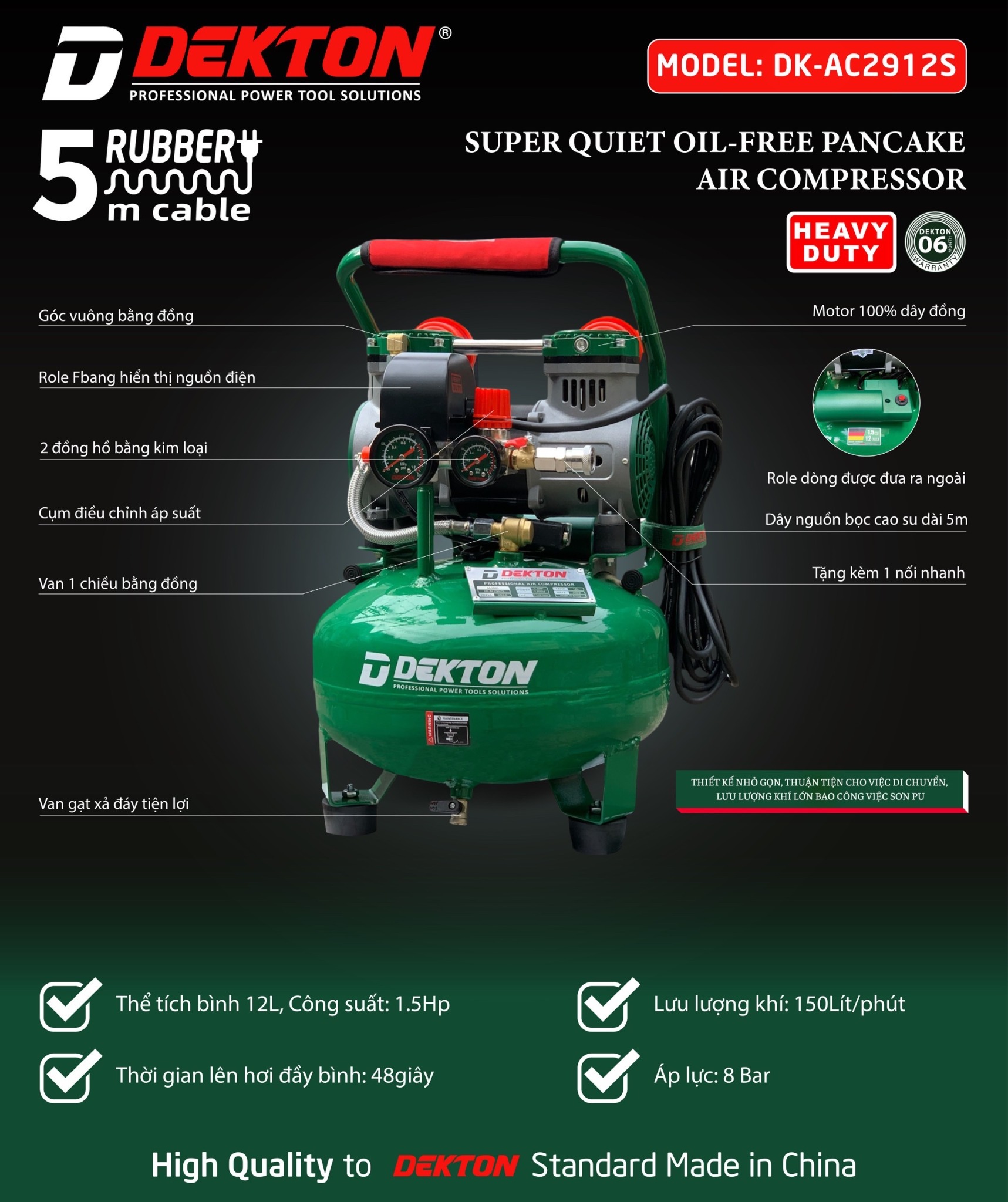 Máy Nén Khí Không Dầu Dekton DK-AC2912S