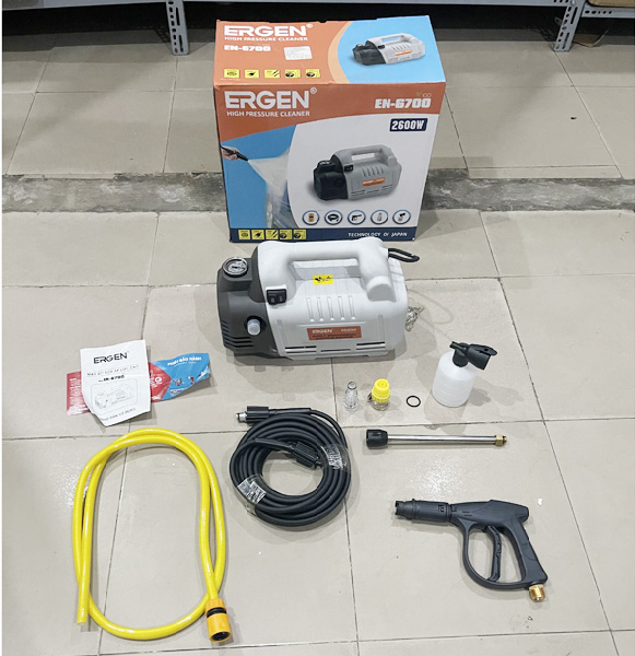 Máy rửa xe Ergen EN-6700 từ thương hiệu Ergen của Trung Quốc. Thiết bị này vận hành với công suất 2.600W kết hợp áp lực phun 120 bar và lưu lượng nước 8 lít/phút giúp rửa sạch hiệu quả đem lại sự yên tâm cho người dùng.
