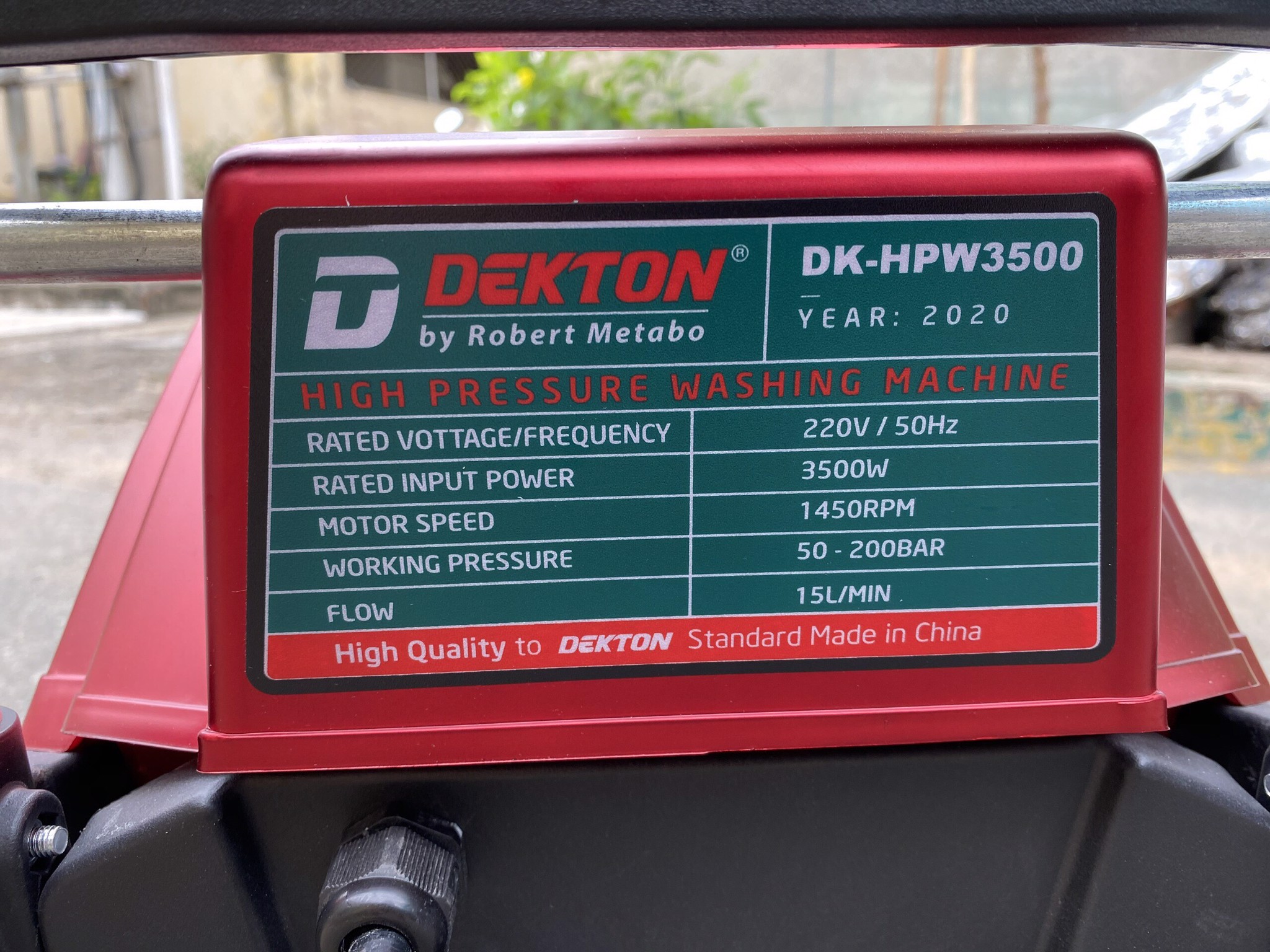 - Máy rửa xe chuyên nghiệp Dekton DK-HPW3500 có áp lực phun từ 50 - 200 bar với lưu lượng nước lên đến 15 L/ phút