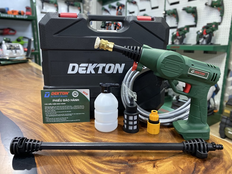 – Máy rửa xe pin Dekton có thiết kế độc đáo, nhỏ gọn, dễ dàng cầm nắm khi sử dụng.