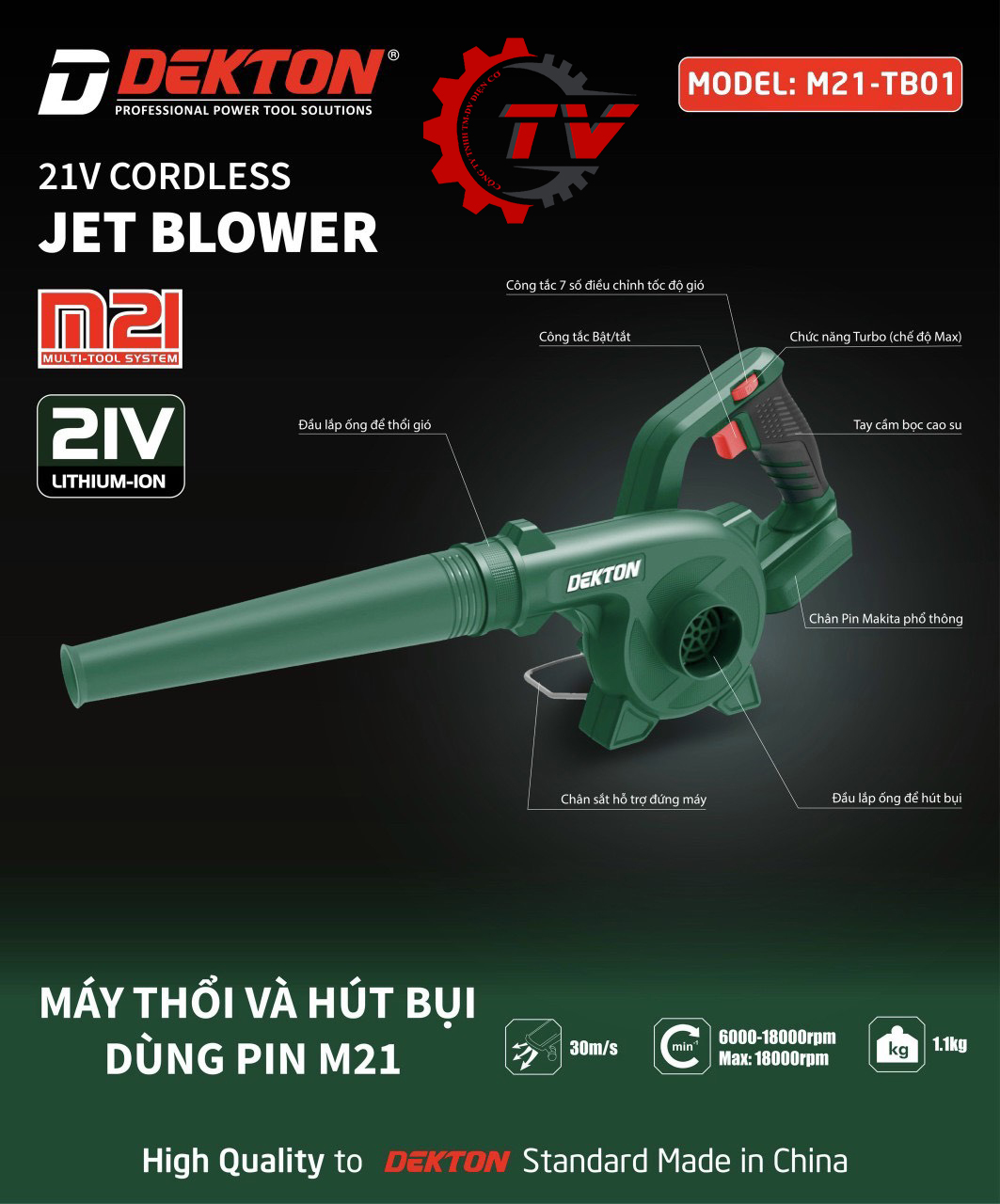Thân Máy Thổi Bụi Dùng Pin Dekton M21-TB01